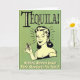 Vintages Plakat mit junger Dame, die eine Getränkklasse hält. Über "Tequila" und unter "helfenden Frauen niedriger ihre Standards für Jahre". Hintergrund ist grün