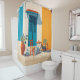 Eine lebendige, sonnige Terrasse mit kühnen blauen Fensterläden, farbenfrohen Stühlen und einer gemütlichen Kaffeemaschine verleiht dem Gast den Charme eines griechischen Inselmorgens. Ideal für Reisen, Dekoration und Lifestyle-Inspiration.