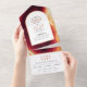 Terracotta agate Scheibe moderne geode alles in einer Hochzeit im Herbst Einladung. Ein modernes und elegantes Hochzeitsdesign mit einem Stück Rot und einem weißen Rahmen mit Ihrer Formulierung. Es enthält eine Abreißprobe abnehmbarer UAWG.