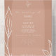 Terrakotta Bogen mit weißem Text und Botanischer Linienkunst. Außenbereich ist Terrakotta mit Rücksendeadresse auf Klappe. UAwg enthält qr-Code.