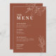 Terracotta Boho Wedding Menü mit Blumenmotiven Menükarte