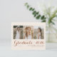 Machen Sie Ihre Abschluss-Ankündigung wirklich unvergesslich mit diesem Foto Abschluss Einladung mit einer drei-Foto-Collage und elegante moderne Kalligrafie. Diese Einladung eignet sich perfekt für Absolventen der High School, Uni oder Graduate School. Mit diesem Abschluss können Sie drei Ihrer Lieblings-Fotos präsentieren, die die wichtigsten Momente Ihrer akademischen Reise hervorheben. Die atemberaubende moderne Kalligrafie verleiht dem Gast einen stilvollen und zeitgenössischen Flair, der Ihre Ankündigung erhöht und den Ton für eine unvergessliche Feier absteckt. Diese Einladung lasse Ihnen, Ihren Namen, Ihr Abschluss, Ihre Schule und Ihre Veranstaltungsdetails ganz individuell zu gestalten. Damit ist sie ein persönlicher und einzigartiger Weg, Ihre große Leistung zu teilen. Egal ob Sie eine Abschlussfeier, eine Zeremonie oder ein offenes Haus planen, diese Einladung ist der perfekte Weg, Ihre Lieben zu Ihrem Fest einzuladen.