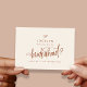 Cette carte de proposition de femme de chambre magnifiquement conçue dispose d'une palette de couleurs chaudes en terre cuite et crème, avec "femme de chambre" présentée dans un élégant script manuscrit. Personnalisez-le avec le nom de votre ami pour une touche de coeur. En bas, le message dit, "Je ne peux pas dire "Je le fais" sans vous," ou vous pouvez le customiser avec votre propre phrase pour le rendre encore plus spécial. Une façon intemporelle et réfléchie de demander à vos proches de se tenir à vos côtés lors de votre grand jour. © Kimbellished, LLC