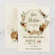 Schöne Erde Ton Herbst Hochzeit speichern das Datum Einladung mit Terrakotta, beige und creme Blumen mit grünen Blättern . FÜR WEITERE PRODUKTE klicken Sie auf die Sammlung oben oder kontaktieren Sie mich