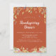 Diese charmante Erntedank Dinner Einladung präsentiert die kalkfarbenen Herbstblätter und Kürbisse im Herbst vor einer grünen Kulisse. Verwenden Sie die Entwurfswerkzeuge, um sie zu personalisieren. Auch als digitaler Download erhältlich!