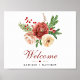 Elegante Terracotta Rosa Rosa Weiße Blütenwein Weihnachtsgebäck Winter Hochzeit Willkommenspopster. Alle Texte sind so vorbereitet, dass Sie sie einfach und schnell mit Ihren eigenen Details personalisieren können.