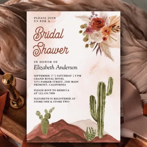 Terracotta Floral Cactus QR Code Foto Wedding Einladung