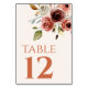 Guidez vos invités dans le style avec cette carte de numéro de table à mariage floral en terre cuite. Conçu avec des roses blush et rouille peints à la main sur un arrière - plan neutre et chaleureux, ce numéro de table ajoute une touche romantique parfaite à votre réception de mariage à la chute ou au boho. La police serif audacieuse garantit que le numéro de table est facile à lire, tandis que l'oeuvre florale améliore l'esthétique générale de votre table. Paire avec la papeterie mariage correspondante pour un look cohésif de la cérémonie à la réception.