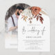 Rustic Terracotta Florals Photo Overlay QR Code Wedding Arch. Elegant florals and berries and grasses in autumn colors terracotta brown and cream, flow down from the top. The Wedding Of is in a set handwriting style script. Easily personalise the rest of the text to your own details. Replace the sample image on the back with your own. Add your QR code to your wedding website on the back makes this a convenient option for your guests to RSVP and see all the details without the need for separate RSVP and details cards. Your QR code will be automatically generated to update the sample code in the design, when you simply change the sample URL in the template with your own wedding website URL.