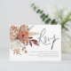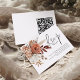 Boho Rust Terracotta Florals Script QR Code Wedding RSVP rendant pratique pour vos invités de répondre en scannant votre code QR menant à votre page de réponse de site Web mariage. RSVP est dans un script stylé et personnalisez facilement le reste des mots à votre place et remplacez l'exemple de code QR au dos par le vôtre simplement en changeant l'exemple url à celui de votre propre site Web.