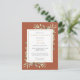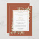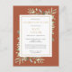 Eine elegante personalisierte Feier des Lebens Gedenkfeier Beerdigung Einladung Postkarte mit botanischem Aquarell grüne Blattwerk auf Terrakotta Hintergrund. Entwickelt von Thisisnotme©