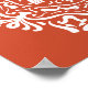 Dieses weiße Mandala sitzt auf einem dunkelorangen Hintergrund. Die Farben sind kreativ und warm. Teil der Erghenn Mandala Kollektion.