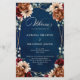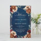 Elégant bleu marine, Terracotta, Programme de mariage à thème orangé et fleuri avec bouquet élégant de bleu marine, pivoines roses couleur terre cuite et feuilles d'eucalyptus vert. Veuillez me contacter pour toute aide sur la personnalisation ou si vous avez besoin d'un autre produit avec ce design.