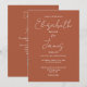 Diese Terracotta minimalistisch elegante Skript Hochzeitseinladung kann mit Ihren Informationen in chic Typografie mit Ihren Hochzeitswebsite-Details und Ihrem QR-Code auf der Rückseite personalisiert werden. Entwickelt von Thisisnotme©