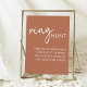 Machen Sie Ihr Brautparty zu einem unvergesslichen Event mit diesem wunderschönen Terracotta Minimalistisch Script Brautparty Ring Hunt Poster. Dieses on-Trend Ringplakat ist das perfekte Brennelement für Ihr Ringjungspiel. Die Terrakotta-Farben und der moderne Script-Schriftart verleihen Ihrem Brautparty ein elegantes, modernes Ambiente. Die Gäste werden Liebe auf der Suche nach den versteckten Ringen, die an diesem Poster befestigt sind, um lustige Preise zu gewinnen. Ideal für die Braut, die ein stilvolles, minimalistisch inspiriert Brautparty will, das immer noch Spaß macht und interaktiv ist. Dieses Ringjungposter macht die Koordination Ihres Ringjagdspiels einfach und stilvoll.