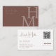 A warm and modern business card design featuring a rich terracotta background with oversized monogram initials and refined script typography. The clean white reverse side keeps your contact details, social icons, and QR code organized for effortless networking. Perfect for creatives, entrepreneurs, and professionals who love earthy tones and a minimal, elevated aesthetic.