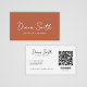 Machen Sie einen bleibenden Eindruck mit einer modernen und vielseitigen Business-Visitenkarte. Diese vollständig bearbeitbare, zweiseitige Vorlage zeichnet sich durch ein auffallendes minimalistisches Design aus. Ein solider Terrakotta-Hintergrund Set die Bühne für Ihren Namen oder Firmennamen in eleganter Schriftzypografie. Die Hintergrundfarbe ist vollständig an den Anzug Ihrer Marke angepasst. Auf der Rückseite können Sie alle wichtigen Kontaktdaten zusammen mit einem praktischen QR-Code und einem Social Media Handle einbinden. Diese Vorlage wurde für die Wirkung und Einfachheit konzipiert und ist perfekt für jede Art von Unternehmen oder Beruf. Ob Sie als echter Anwesen-Agent, Kosmetiker, Designer, Designer, Künstler, Corporate beruflich oder in einem beliebigen Berufsstand arbeiten, die Farben, Texte und Logos nahtlos verändern, um eine berufliche und unverwechselbare Darstellung von Ihnen oder Ihrem Unternehmen zu schaffen.