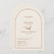 Eine elegante und moderne, erdig-neutrale bogenförmige Hochzeitseinladung mit minimalistischem Text mit handgeschriebenem Schriftzeichen-Akzent. Auf einem neutralen beigen Hintergrund mit Terrakotta-Text und Designelementen dargestellt, aber alle Elemente können nach Ihrem Thema neu gefärbt werden. © Kimbellished, LLC