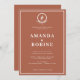 Feiern Sie Ihren besonderen Tag mit dieser minimalistischen Terracotta Hochzeitseinladung mit einem klassischen, blumengeschmückten A&R Monogramm in einem klaren Kreis. Ideal für Paare, die ein elegantes und zeitloses Design mit moderner Einfachheit gewollt haben. 🌿 Design Features: Elegante Serifentypografie mit fetten Namen Ein&R Blumenmuster-Wappen in einem Kreis für eine raffinierte Touch Zentrales symmetrisches Layout mit großzügigem Abstand Warm Terracotta mit weißem Rahmen und Text 💍 Perfect For: Rustikal-schicke Hochzeiten, minimale formale Veranstaltungen, monogrammbezogene Einladungen, Hochzeiten im Herbst und klassische moderne Zeremonien.