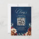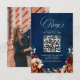 Elegant Navy Blau, Terracotta , Orange erthy floral Thema QR Code Foto RSVP Karte mit elegantem Bouquet von Navy Blau, Terracotta Farbe Rose Peonies und grüne eucalyptus Blätter. Bitte kontaktieren Sie mich für Hilfe bei der Anpassung oder wenn Sie ein anderes Produkt mit diesem Design benötigen.