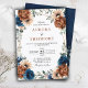 Elegant Navy Blau, Terracotta , Orange erthy floral Thema Hochzeit Einladung mit elegantem Bouquet von Navy Blau, Terracotta Rose Peonies und grünen eucalyptus Blätter. Bitte kontaktieren Sie mich für Hilfe bei der Anpassung oder wenn Sie ein anderes Produkt mit diesem Design benötigen.