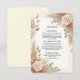 Embrace elegant earthy tones with this beautifully balanced arrangement of dusty rose, warm beige, and sage green leaves for a perfect fall celebration.This design establishes a clean, sophisticated visual hierarchy, setting classic uppercase serif typography against a pristine off-white background. The layout is anchored by soft, watercolor-style corner compositions featuring dusty rose blooms, dried pampas grass, and muted sage green eucalyptus. The warm, earthy palette creates a highly readable and balanced aesthetic. This is a flat printed image with a printed paper texture effect, not actual raised material.