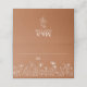 Diese Platzkarte zeigt weiße Zeichnungen von Wildblumen auf Terrakotta (verbrannt orange) Hintergrund. Das Hotel ist Teil einer wunderschönen Hochzeitssuite mit Einladung, Speisekarte, Tischnummern und anderen wichtigen Hochzeitsartikeln.