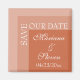 Einfache, moderne, schicke Hochzeitsmagnet 'RETT OUR DATE' für Braut, die ihre Zeremonien in der modernen Terracotta bewundern. Alles Set auf modernem weißem Schriftart mit Initialen auf der Seite.