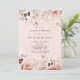 Das Design zeichnet sich durch eine bedruckte Farbe mit blumengeschmückten Elementen in Terrakotta-Bronze-Orange über grüne Blätter und Pfannkuchen-Wildblumen auf einem weichen Terrakotta-Aquarell-Hintergrund aus. Ideal für Ihre Hochzeitsfeiern!