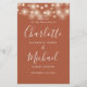 Terracotta-Signatur-Skript Hochzeitsprogramm mit hübschen Saitenleuchten und schicke moderne Typografie. Dieses stilvolle Hochzeitsprogramm kann mit Ihren speziellen Informationen zum Hochzeitstag personalisiert werden. Entwickelt von Thisisnotme©