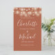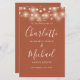 Programme de mariage signé en terre cuite avec de jolies lampes à cordes et une typographie moderne chic. Ce programme de mariage élégant peut être personnalisé avec vos informations spéciales de jour de mariage. Conçu par Thisisnotme©