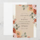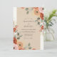 This design features a warm palette of terracotta, rust, and soft peach tones. Delicate watercolor roses and ranunculus are paired with sage green eucalyptus leaves for an earthy, organic aesthetic. Subtle gold accents add a touch of sophistication to the muted tan background. The overall mood is romantic and perfect for an autumnal or desert-themed event.
