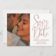 Diese Terracotta elegante Skript Hochzeit speichern Sie das Datum Einladung kann personalisiert werden mit Ihren 2 besonderen Fotos und Hochzeitstag Informationen und Hochzeitswebsite QR-Code. Entwickelt von Thisisnotme©