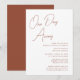 Terracotta Whimsical Script Chic einen Tag weg Einladungskarte. Feiern Sie Ihren besonderen Tag mit dieser eleganten und wunderschönen Einladungskarte für Ihre Hochzeit, um Ihren besondere Anlass zu verschönern. Alle Texte sind so vorbereitet, dass Sie sie einfach und schnell mit Ihren eigenen Details personalisieren können.