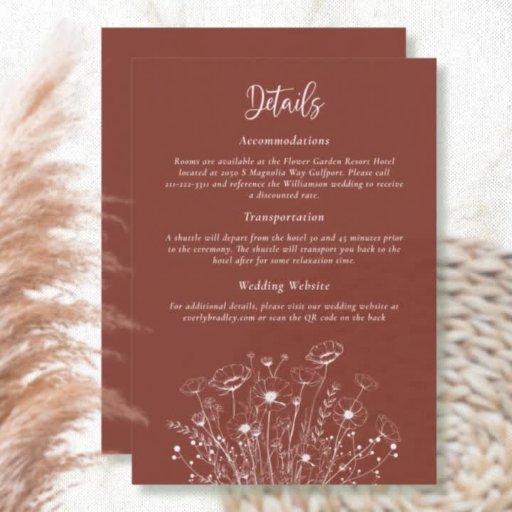 Diese fett-weiße Blüte auf Terrakotta-Hintergrund ist ein einfaches und modernes Programm für Ihren Hochzeitstag. Personalisieren Sie alle Informationen, einschließlich Einzelheiten zur Zeremonie und der Begleiter