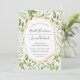 Notre collection Terrarium encadre vos détails mariages avec une bordure géométrique or chic, contre un arrière - plan de feuilles botaniques vert aquarelle et feuillage de fougères.