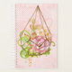 Belle aquarelle illustration présente un arrière - plan coloré d'eau rose et blanche avec une variété de succulents dans un planteur de terrarium de style géométrique ouvert