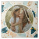 Verbessern Sie Ihren Platz mit unserer Terrazzo Muster Personalisiert Foto Keramik Tile. Diese Kachel mit einem schicken Terrazzo-Muster in aquamarinen, blauen, rosa, cremefarbenen und goldenen Farbtönen und einer runden Fotovorlage verbindet modernes Design mit Individualisierung. Ideal, um Ihrer Wohngestaltung eine einzigartige Touch hinzuzufügen oder ein personalisiertes Geschenk zu machen.
