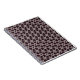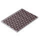 Ein Muster bestehend aus wiederholten geometrischen Mustern deckt den gesamten Rahmen auf eine tessellationsähnliche Weise ab. Braune Farbtöne und rosa Farbtöne erzeugen einen dreidimensionalen optischen Effekt, der einer gesteppten Oberfläche ähnelt.