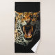 Fierce Puissant Leopard Roaring portrait d'attaque gros avec de longs crocs. Illustration vectorielle originale isolée sur blanc Copyright BluedarkArt TheChameleonArt.