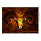 Plusieurs images fractales combinées pour former une tête de bélier colorée sur un arrière - plan qui ressemble à du bois sculpté. Ajoutez votre propre texte.