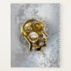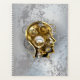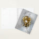 Tête conceptuelle, mécanique, humaine avec manomètre antique et engrenages métalliques contre arrière - plan industriel gris. Style Steampunk.