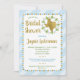 Une invitation à la douche nuptiale de l'état du Texas. En bandes épaisses bleues avec un emblème d'état or et une couronne florale.