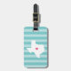 Rep deinen Zuhause-Staat von Texas mit diesem niedlich türkisfarbenen und rosa Gepäckanhänger mit einer Silhouette des texanischen Staat mit einem rosa Innenhof, überlagert auf einem modischen, prächtigen aqua Streifen Hintergrund. Dieses niedliche Design in trendigen Farbtönen macht ein großartiges Weihnachtsgeschenk für Frauen, Jugendliche und Mädchen, ob sie in Texas leben, aus Staat für Uni oder Gefühl Heimweh oder Nostalgie für ihren Zuhause-Staat. Stellen Sie die Rückseite mit Ihren Kontaktdaten in Weiß auf Türkis passend ein.