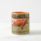 Cette jolie tasse présente ma photo originale d'une belle et grande vache longhorne du Texas, debout dans un pâturage agricole, traitée dans une technique illustrée et peinte pour un style artistique. La poignée et l'intérieur de la tasse sont un ton orange pour compléter l'oeuvre d'art. Ce sont des tasses de 11 onces, juste la taille idéale pour votre café ou thé maison - ou même du chocolat chaud! Il ferait un grand cadeau et vous pouvez mettre des paquets de café, des sachets de thé ou du chocolat chaud à l'intérieur. Une autre idée de cadeau est de mettre un petit plante dedans pour le rendre spécial pour votre être cher.