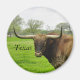 Longhorn Texas runder Magnet. Burnt orange Longhorn gegen grünen Hügel. Original Foto von Cherie Haines.