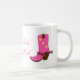 Girly Tasse des Spaßes für irgendein Cowgirl das Lieben das Farbrosa, mit Grafiken eines rosa Paares Cowboystiefel und Sonnenbrillen. Text liest Texas-Mädchen-Liebe-Rosa, und kann personalisiert sein, zu lesen, was Sie wollen.