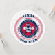 Ein gewagtes, patriotisches Design mit rot, weiß und blau erinnert an Gefühle der Freiheit, Loyalität und Einheit. Der Name des Staat "Texas" wird hervorgehoben angezeigt, umgeben von Informationen über die Hauptstadt, die Einwohner, die Region, die Zeitzone und die geografischen Koordinaten. Die Rückseite ist leer: verlass sie wie besehen oder fügen Sie Ihren Text durch den Zugriff auf das Entwurfstool hinzu. Ideal für nationale Feiertage und patriotische Veranstaltungen.