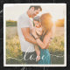 Personalisierte Single quadratische Fotovorlage und Liebe Skript-Text auf einem Stein Tisch trinken Untersetzer.