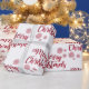 Niedlicher Text aus rotem Glitzer Frohe Weihnachten und Schneeflocken
